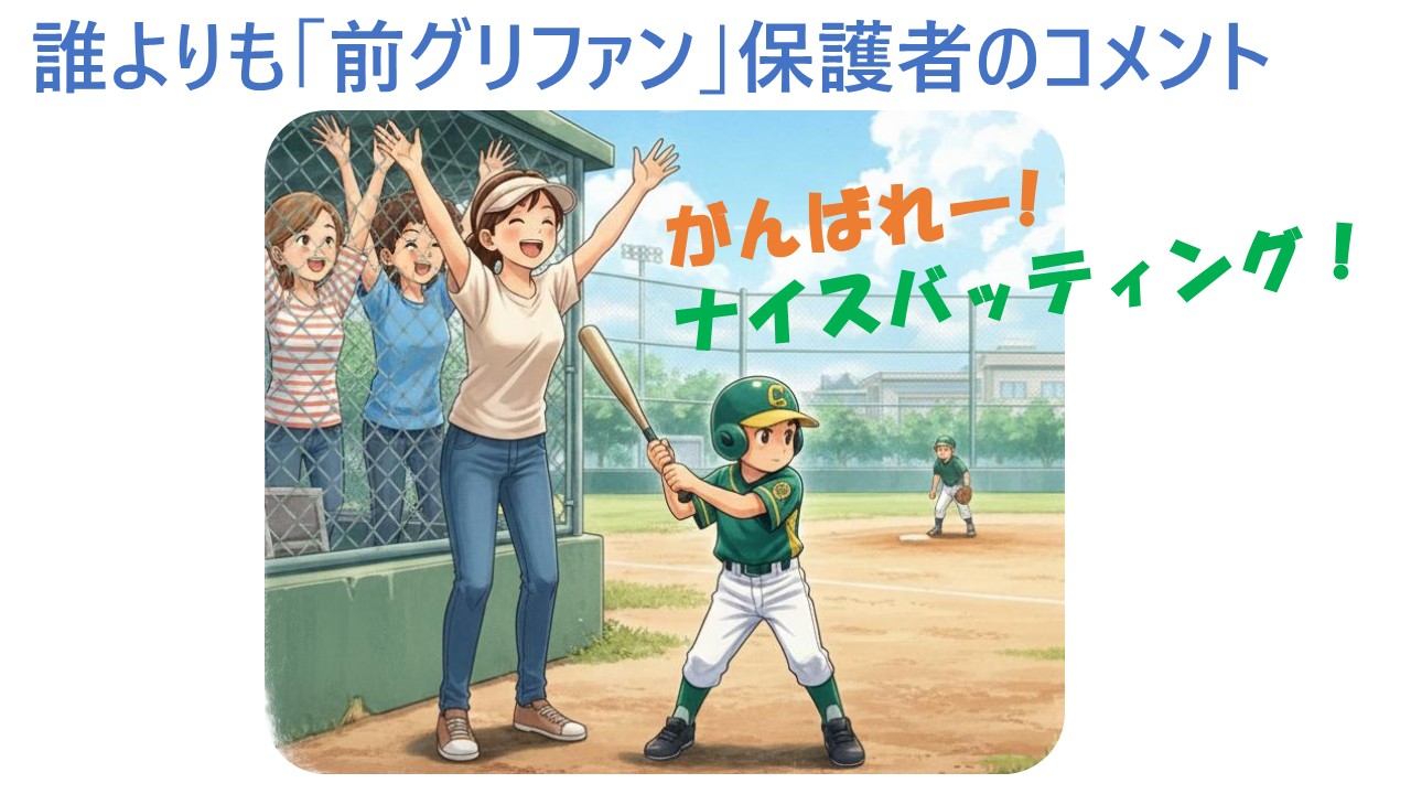 「学童野球は保護者が大変」という先入観しかなかった私に、子供が「野球したい」と言い出した時は少しドキッとしました。それが前田グリーンスターズに体験に来たら一変しました。当時の監督から「子供の成長を近くで見れるのは今しかないし、何よりの幸せ」という言葉に心動かされ野球経験はありませんでしたが、今ではコーチとして毎週末を楽しく過ごしています。