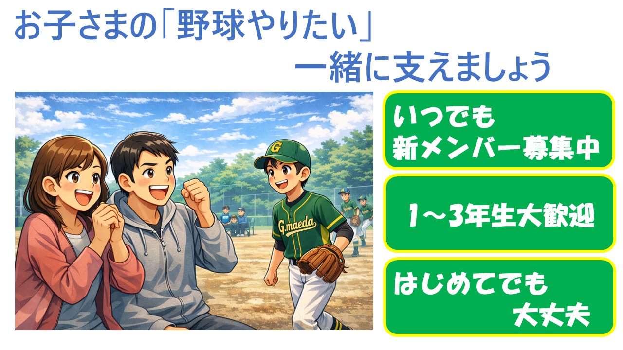 前田グリーンスターズは、一生懸命プレーすることを大切にする学童野球チームです。